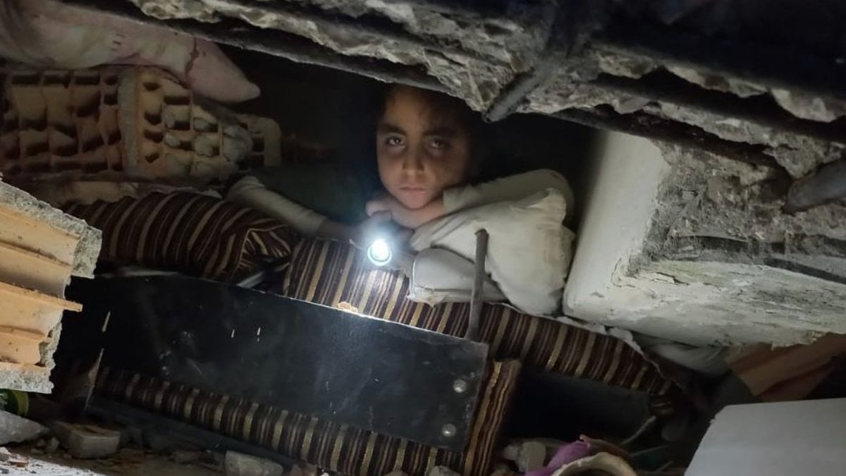 Hatay'da görevli İHH arama kurtarma ekibi, gelen bir ihbara gittikleri binada, enkaz altında fenerle etrafını aydınlatmaya çalışan bir kız çocuğunu buldu.