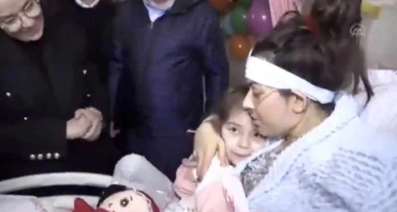 İrem Bağrıaçık da depremde ayağının dolabın altında kaldığını belirterek, "Deprem sırasında dedemde üstüme yatmış. Annemin de dolapta eli kaldı. Annemi çok özlemiştim. Çok sevindim." dedi.