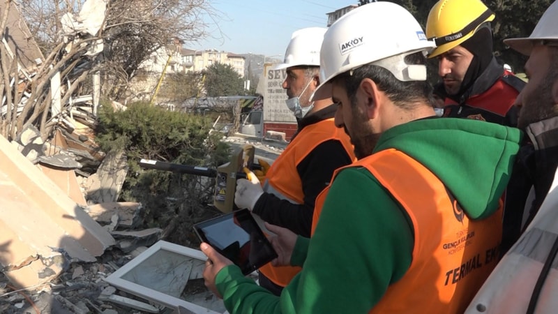 Deprem felaketinin yaşandığı Hatay'da enkaz altında kurtarılmayı bekleyen insanlar, termal dedektör ile tespit ediliyor.