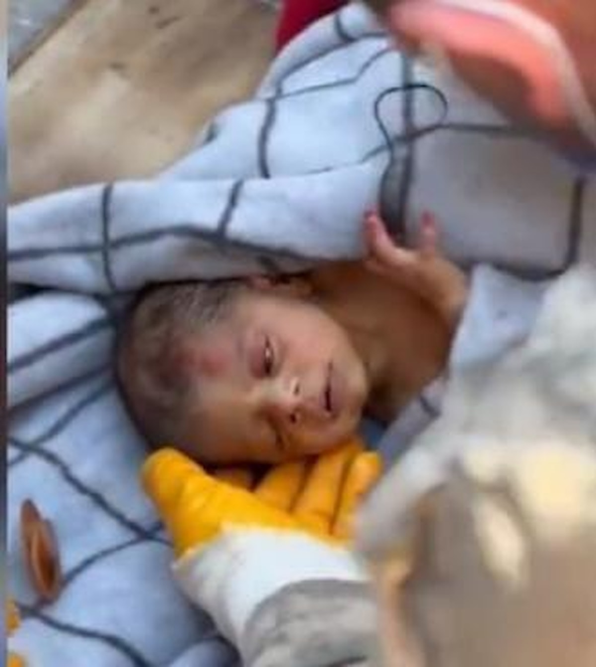 Bebek elinde kalan annesinin saçları ile enkazdan alınıp sağlık ekiplerine teslim edilerek hastaneye kaldırıldı.