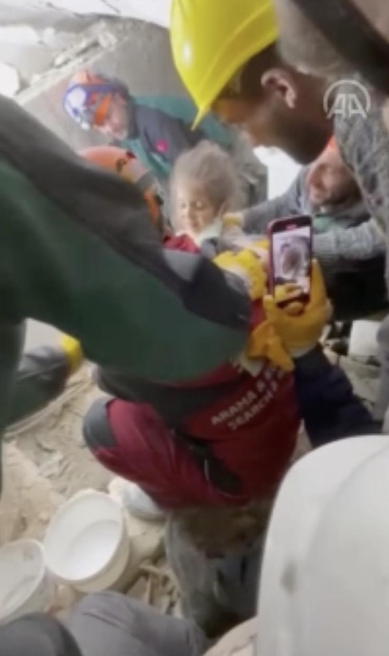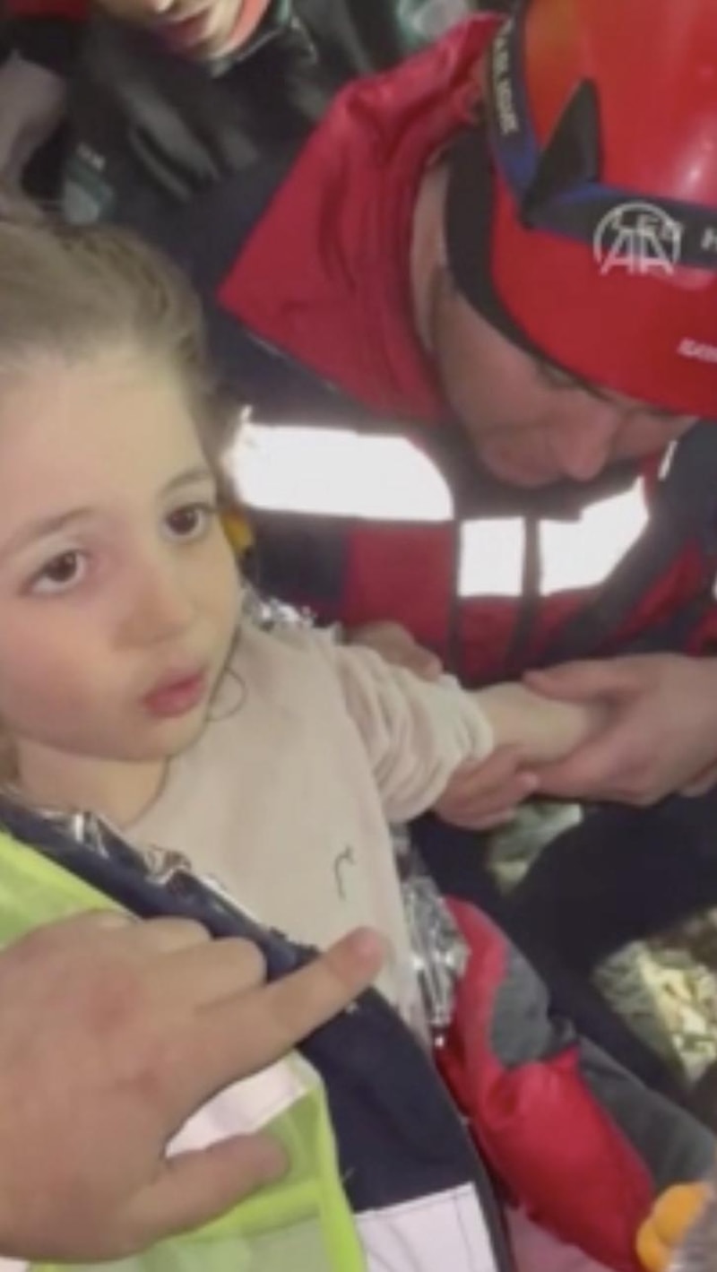 Küçük kız, kendisini kurtaran ekiplerin su isteyip istemediği sorusuna, "Yok daha muayene olmadım." karşılığını verdi.