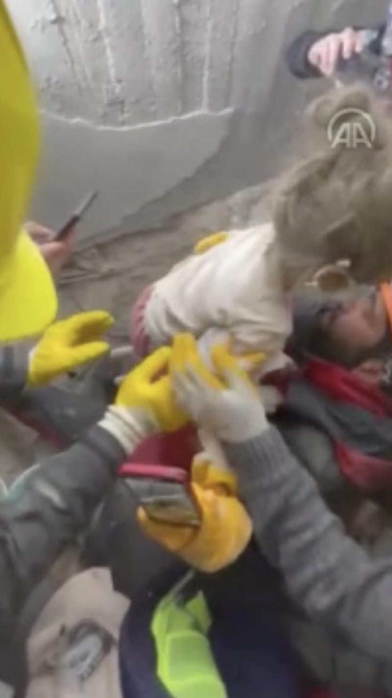 Enkazda yapılan çalışma sonucu ilk depremden 72 saat sonra 5 yaşındaki Hazal ile annesi Betül Güner kurtarıldı.