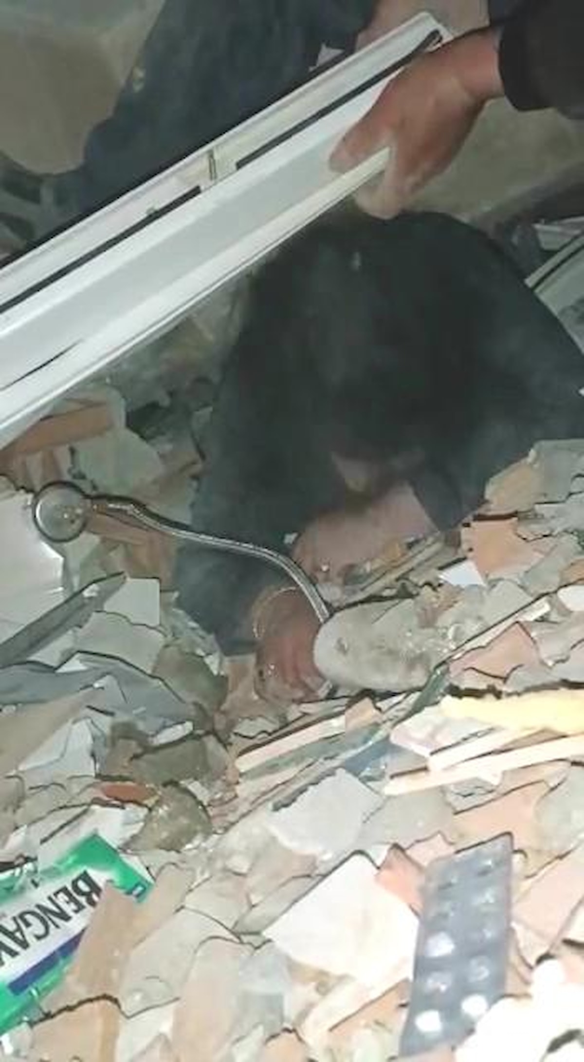 Burada ekipler, enkaz altında kalan 56 yaşındaki Fatma Çalışkan'ı kurtarmak için canla başla çalıştı.