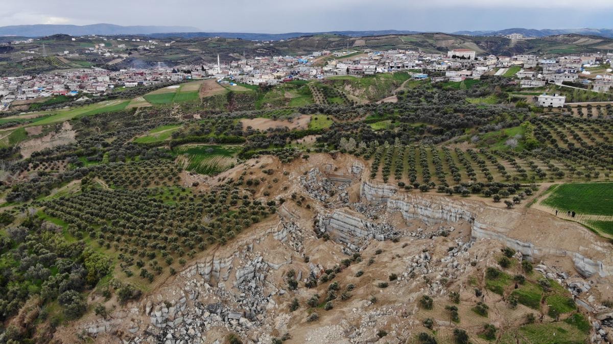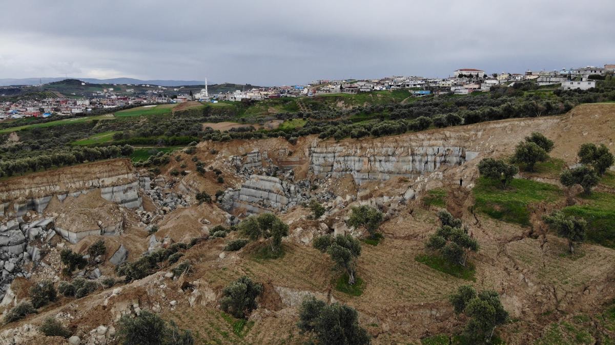 Altınözü ilçesinde Tepehan Mahallesi'nde deprem sonrası zeytin bahçesinde kanyonu andıran dev bir yarık oluştu.