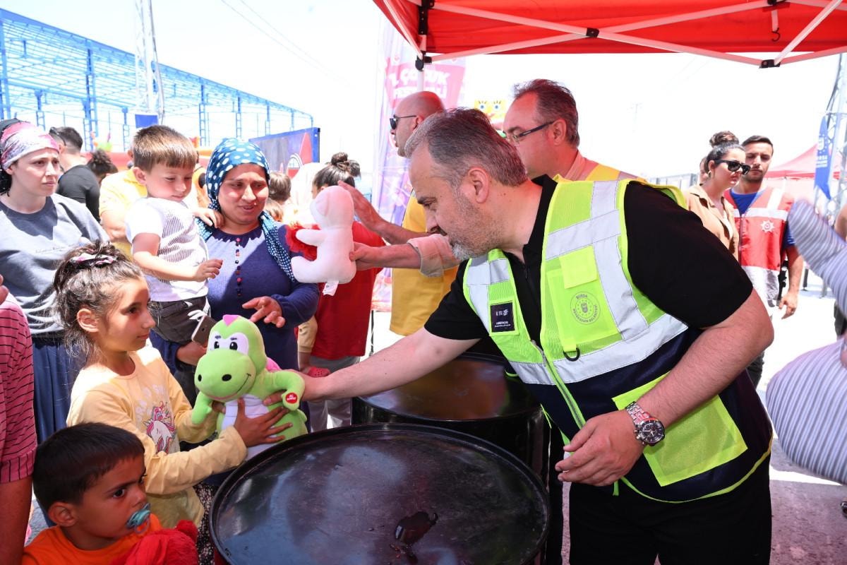 Hatay temasları kapsamında 3 öğün yemek ihtiyaçları Bursa Büyükşehir Belediyesi tarafından karşılanan Konya Büyükşehir Belediyesi’nin kurduğu konteyner kenti de ziyaret eden Başkan Aktaş, sohbet ettiği afetzedelere yemek dağıttı.
