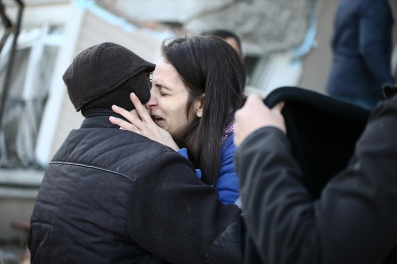 Binanın çevresinde umutla bekleyenler, yakınlarının kurtarılmasıyla gözyaşlarını tutamayarak birbirlerine sarıldı. Yaralılar bölgedeki ambulanslarla hastanelere sevk edildi.