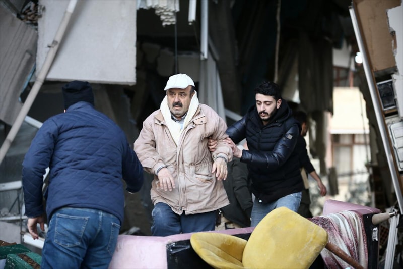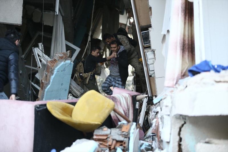 Hatay'da, Kahramanmaraş merkezli 10 ili etkileyen depremler nedeniyle yıkılan binanın enkazından, komandoların çalışmasıyla 8 kişi yaralı çıkarıldı.