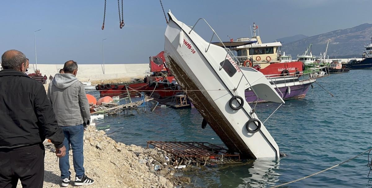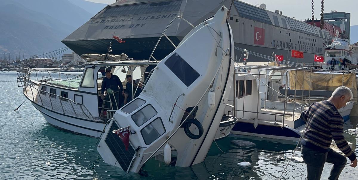 İskenderun ilçesinde de fırtına hayatı olumsuz etkilerken balıkçı barınağında bulunan 3 tekne, fırtınanın etkisiyle battı.