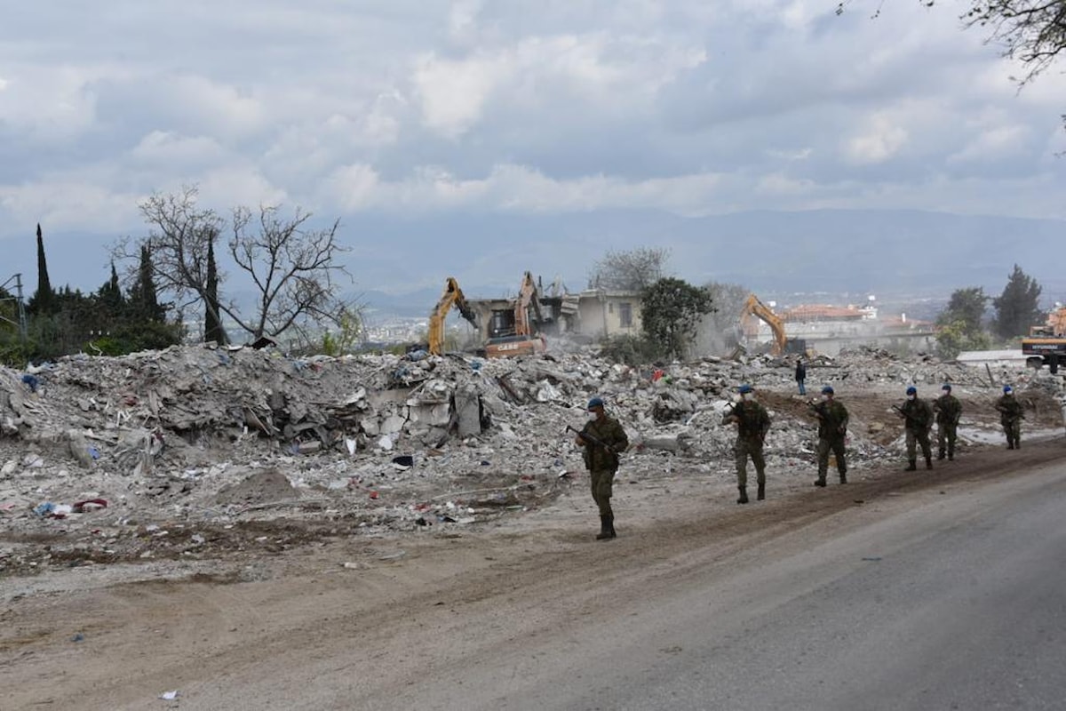 Depremlerin ilk gününden itibaren asayişi koruyan Mehmetçik, depremlerde büyük yıkıma uğrayan Hatay'da asayişe devam ediyor.