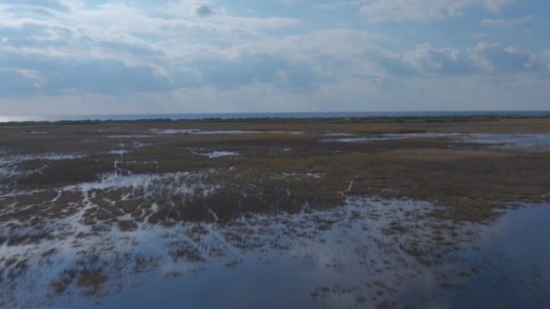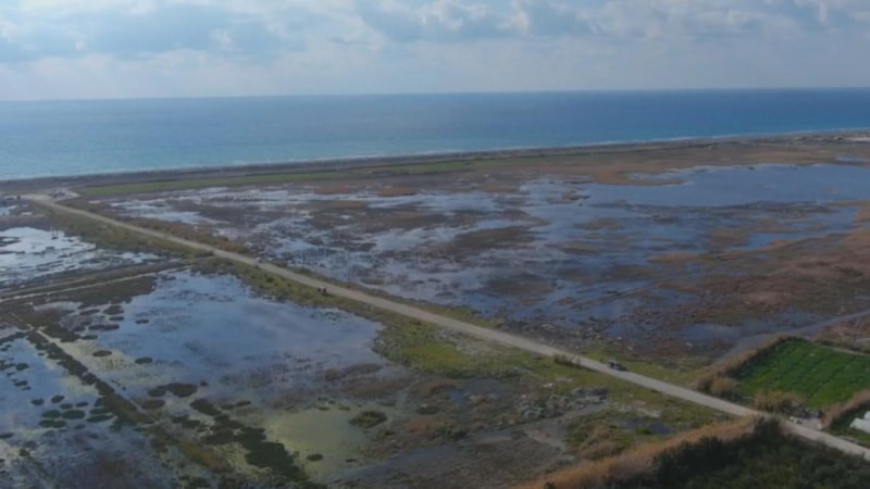 Samandağ ilçesinde bulunan ve kayıt altına alınan 280'den fazla kuş türünü barındıran Milleyha Kuş Cenneti'nin son durumu havadan görüntülendi.