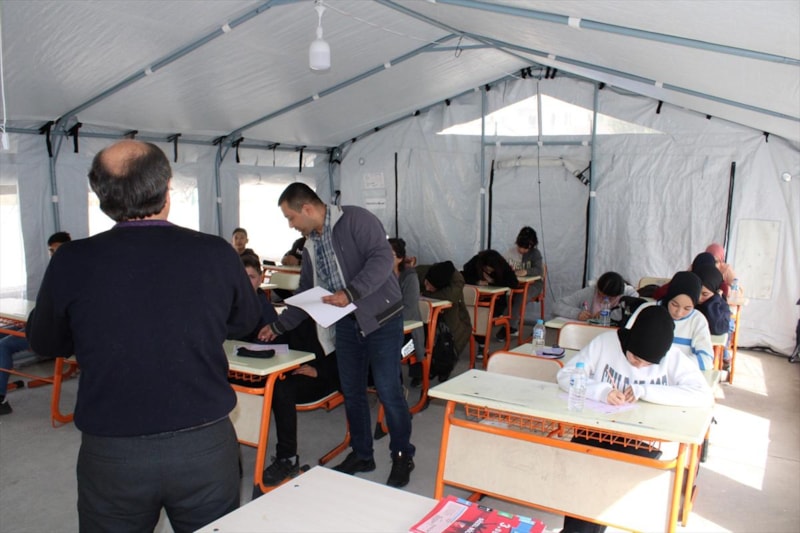 Çadır sınıflarda Destekleme ve Yetiştirme Kursları başlattık. Kurslar kapsamında burada deneme sınavları da gerçekleştiriyoruz. Amacımız çocukların iyi bir geleceğe sahip olması. Devletimiz her türlü imkanı seferber etti. Biz de imkanlar ölçüsünde en iyisini yapmaya çalışıyoruz.