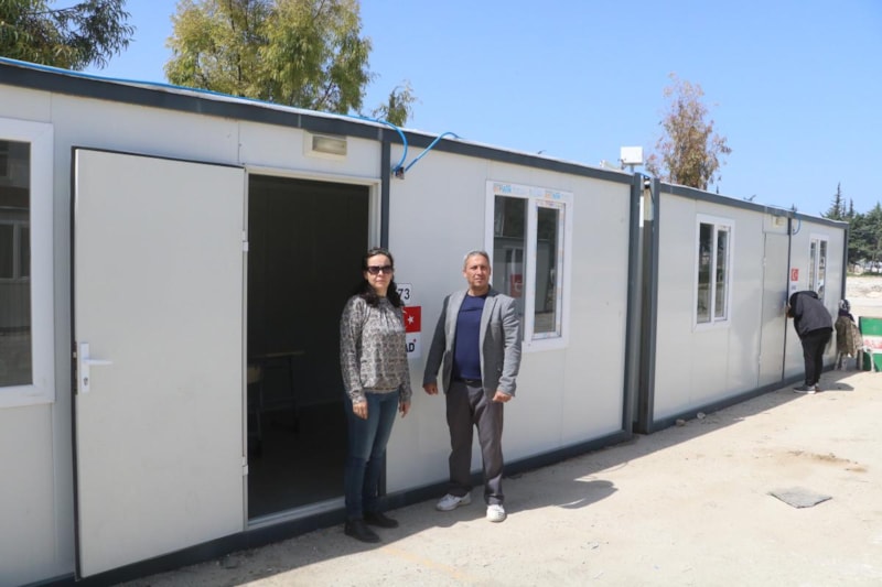 Depremin vurduğu Hatay'da 31 Mart Pazar günü gerçekleşecek olan yerel seçim kapsamında 96 konteynere sandıklar taşınarak seçim alanı kuruldu.
