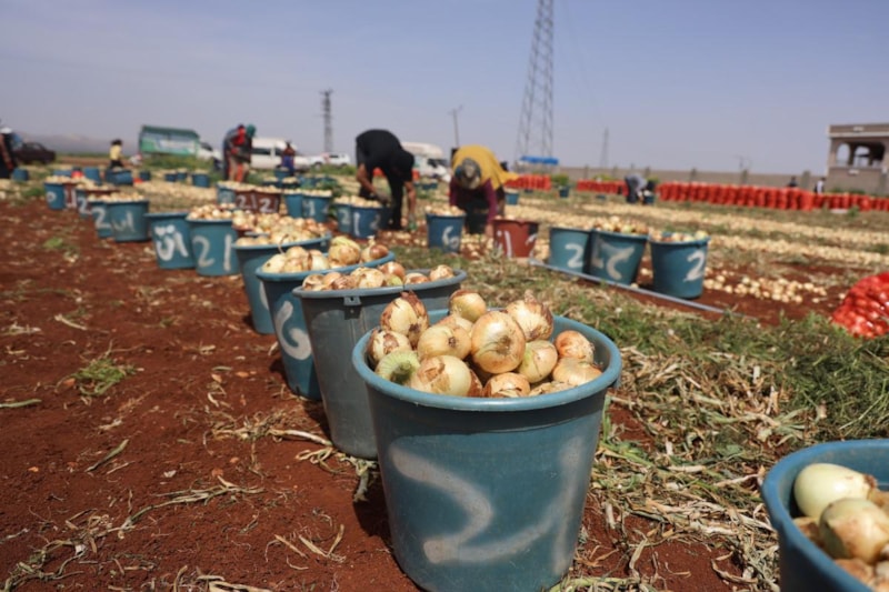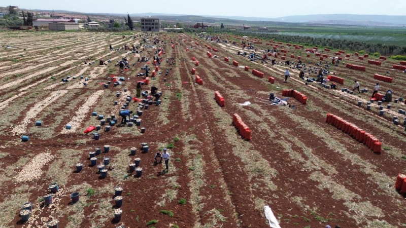 Burası Reyhanlı ilçesi Amik Ovası'ndayız. Amik Ovası ve Çukurova bölgesinde soğan hasadına başladık. Soğan hasatları daha tam başlamadan fiyatlarda değişiklikler başladı. Yetkililerden ihracat yollarını açık tutmalarını rica ediyoruz. Soğan hasadı Eylül ayına kadar devam edecek. Soğan hasadında tonajlarımız ve rekolte bu yıl iyi gidiyor. Bazı çeşitlerimizi de don vurdu ama genel olarak rekolte yüksek. Tarlada soğanın fiyatı 15 TL ile 20 TL iken marketlerde 25 TL ile 30 TL arasında değişiyor. Hasat çoğaldıkça fiyatlarda azalmalar görülebilir. Rusya pazarına soğanları gönderiyoruz. Rusya'ya soğan giderse ve fiyatı 10 TL'nin aşağısına düşmezse üretici üretime devam eder. 10 TL'nin aşağısına düşerse üretim yapacak kazanç elde edemez. Bütün çiftçilerimizin en büyük sorunu kuraklıktır. Her yıl Amik Ovası'na ortalama 700 kilogram yağmur yağarken bu yıl ise 100 kilogram yağdı. Bu durum da kuraklığa sebep oldu. Üreticimiz gece gündüz durmadan üretimi yaptı. Ülkemizin hizmetine soğanları sunuyoruz.