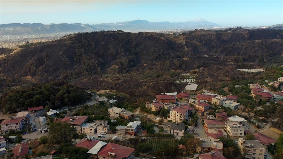 Yurt genelinde çıkan yangınlara müdahale sürerken, Hatay'ın merkez Antakya ilçesinde devam eden orman yangınında zarar gören yerler havadan görüntülendi.