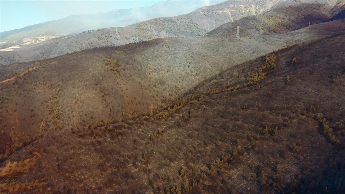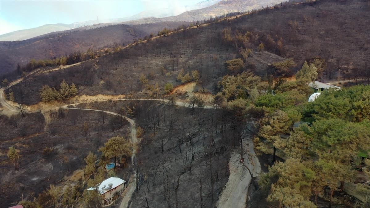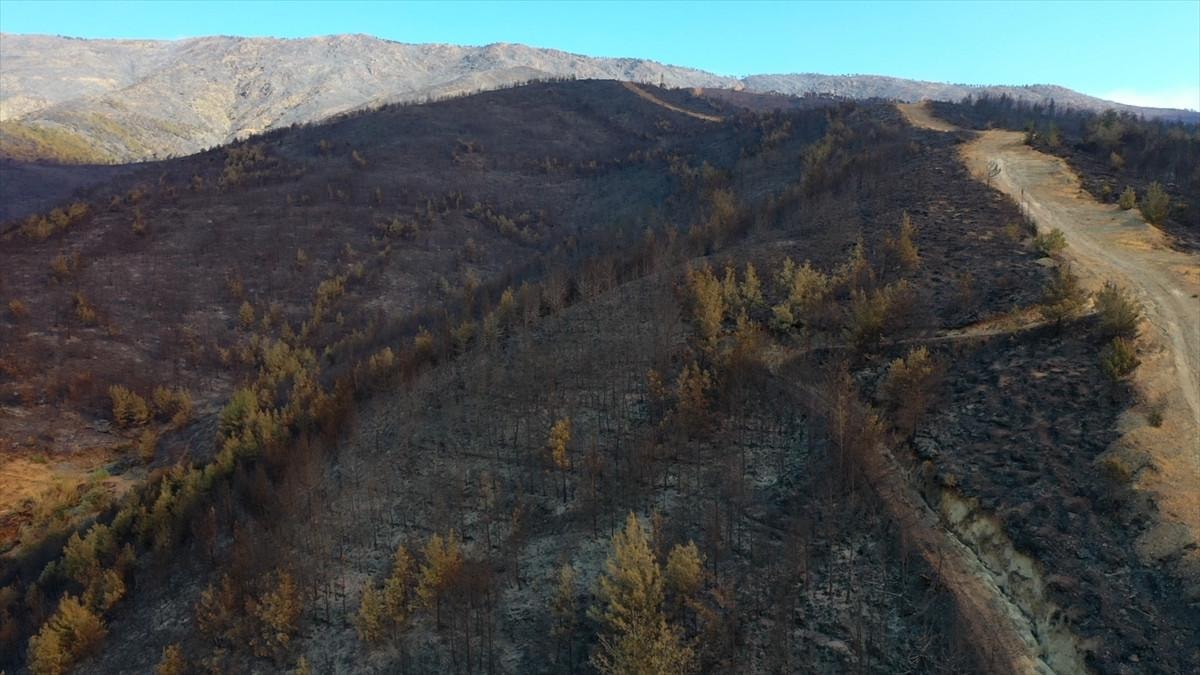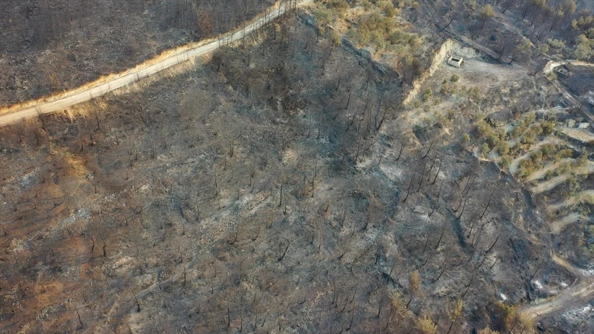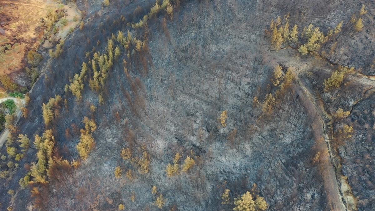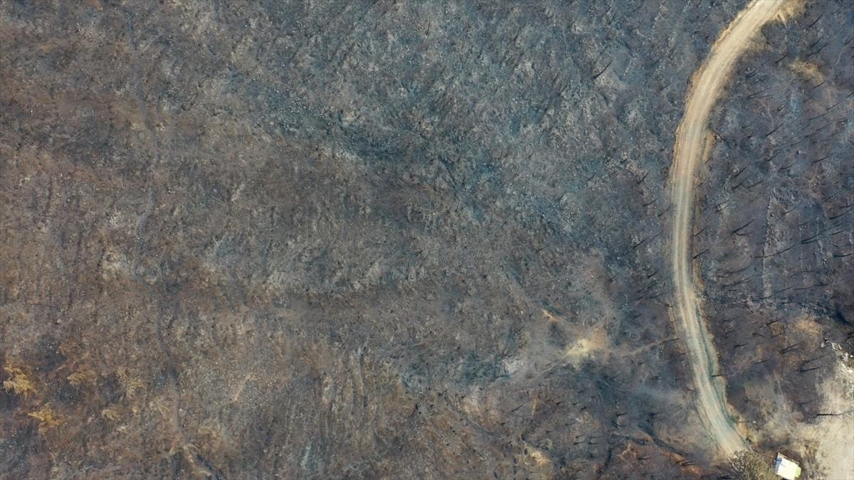 Görüntülerde, yanan alanların yerleşim yerlerine yakınlığı ve alandaki birçok ağacın küle dönmesi yer alıyor.