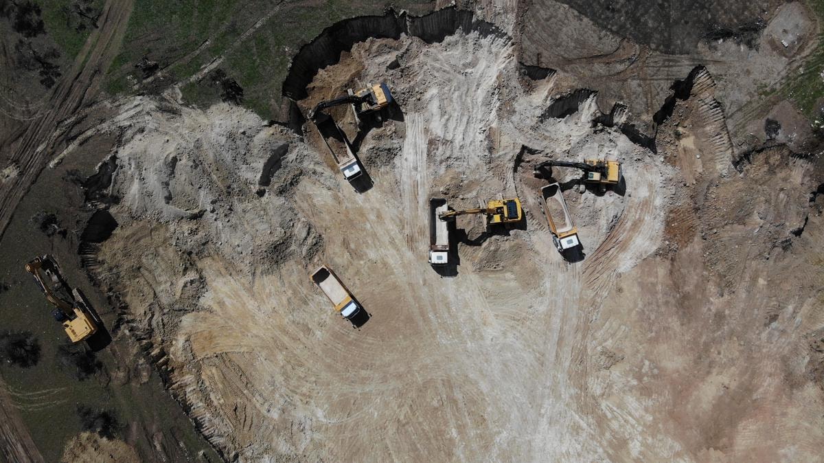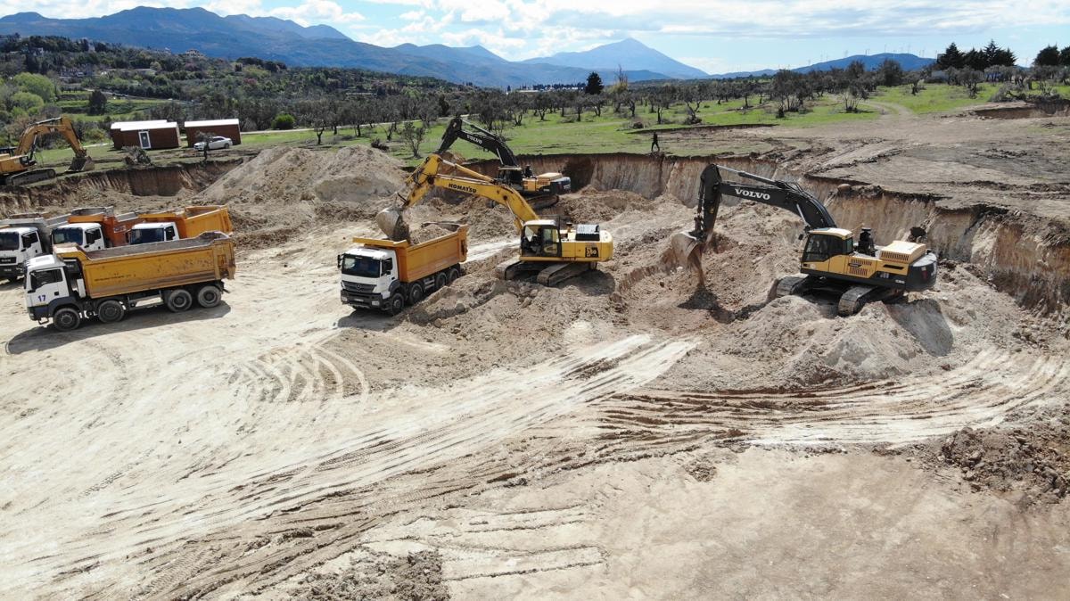 Çok sayıda iş makinesi ve kamyon 24 saat aralıksız çalışıyor.
