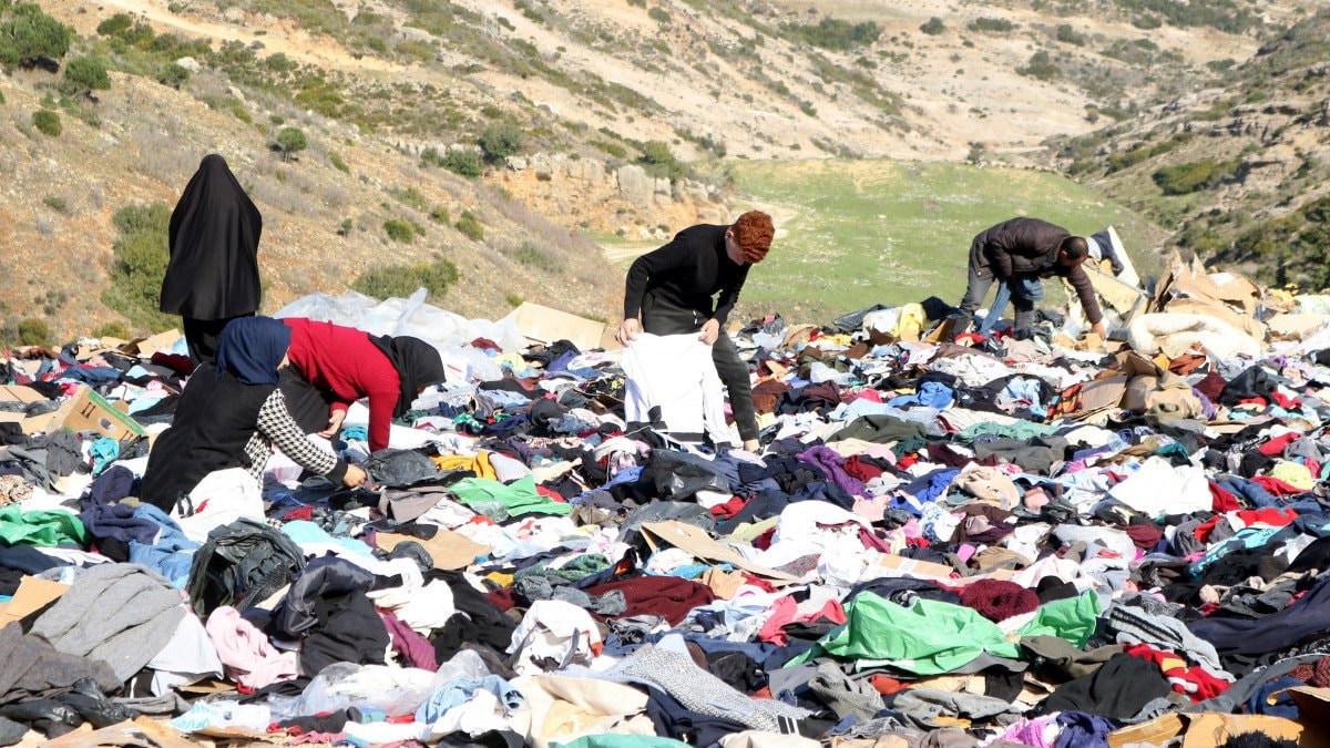 Kıyafetleri buraya atmışlar. İhtiyacı olan gelip, buradan alıyor. Kimin attığını da görmedik ama insanlar gelip, buradan ihtiyacını bir şekilde gideriyor.