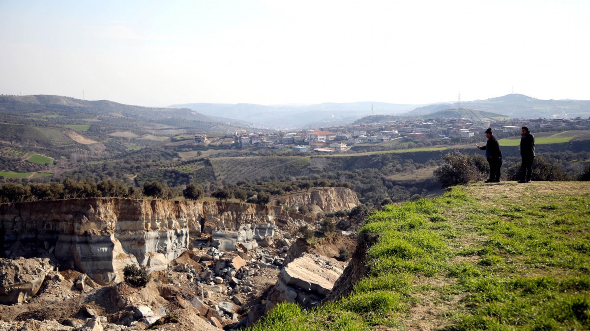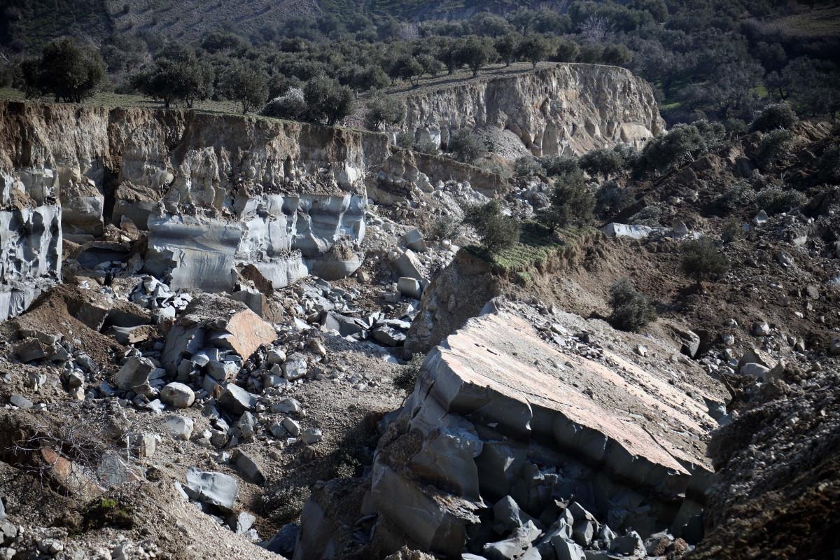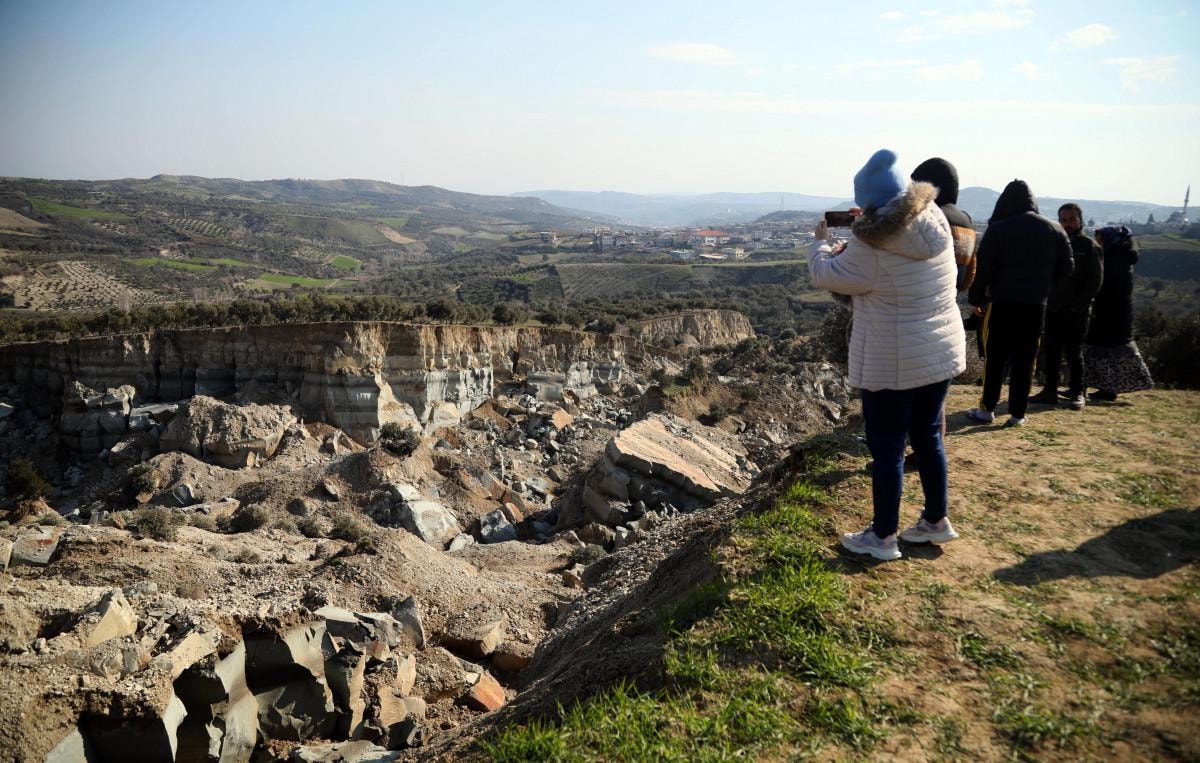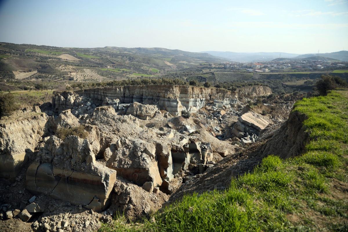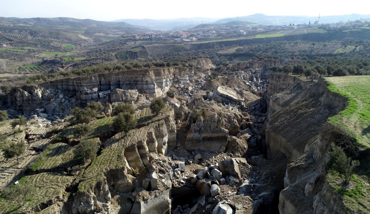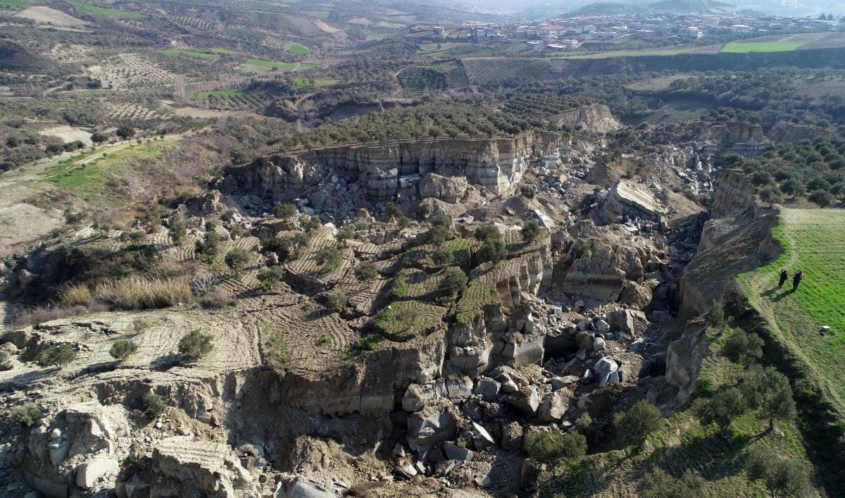 Kahramanmaraş merkezli, 10 ili etkileyen depremlerde, Hatay'ın Altınözü ilçesinin 1000 haneli 7 bin nüfusla Tepehan Mahallesi'ndeki bir zeytin bahçesi ikiye ayrıldı.