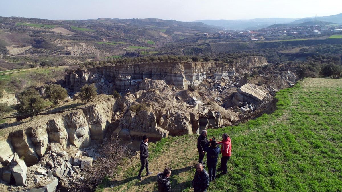 Burası bir zeytinlik; ekilip, biçilen imar olan bir yerdi. Büyük patlama oldu. O, akılalmaz bir sesti. Sanki bir savaş alanı gibiydi, evin içinde yürütmedi. Evden çıktık. Yağmur da vardı. Mahalleden bakınca burası görünüyordu. Bu hale gelmiş. Çöken alan 100 dönümden fazla. Böyle bir deprem yaşanmadı, sarsıntılar oldu ama böylesini görmedik. Babalarımız anlatırdı. Hatay, tarihler önce yerle bir olmuş. Dedelerimiz görmemiş ama anlatırlardı. 'Hatay depremde yeniden yok olacak' derdi ve onu yaşadık. Uzmanların gelmesi ve keşif yapması lazım. Gerekirse mahalle taşınmalı.