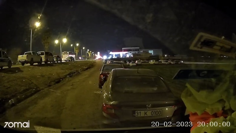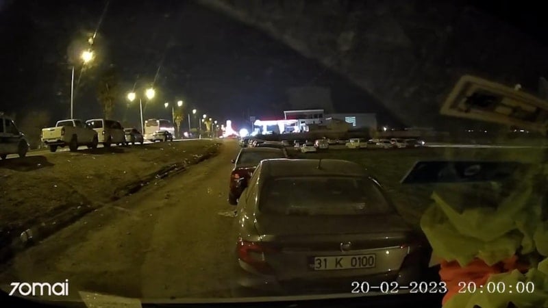 Yaşanılan depremin boyutu, bir aracın içindeki kameraya yansıdı. Görüntülerde elektrikler kesilerek, araçlar sallandı.