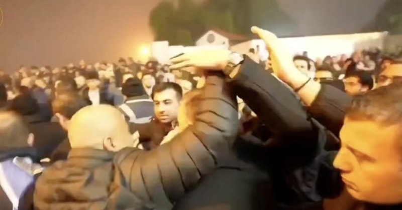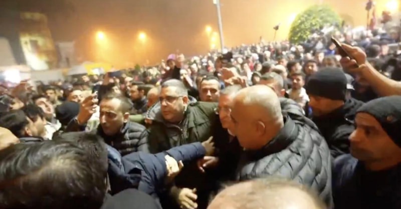 Öfkeli kalabalık Lütfü Savaş'a büyük tepki gösterirken, Savaş ve beraberindekiler yürüyüşte güçlükle ilerleyebildi.