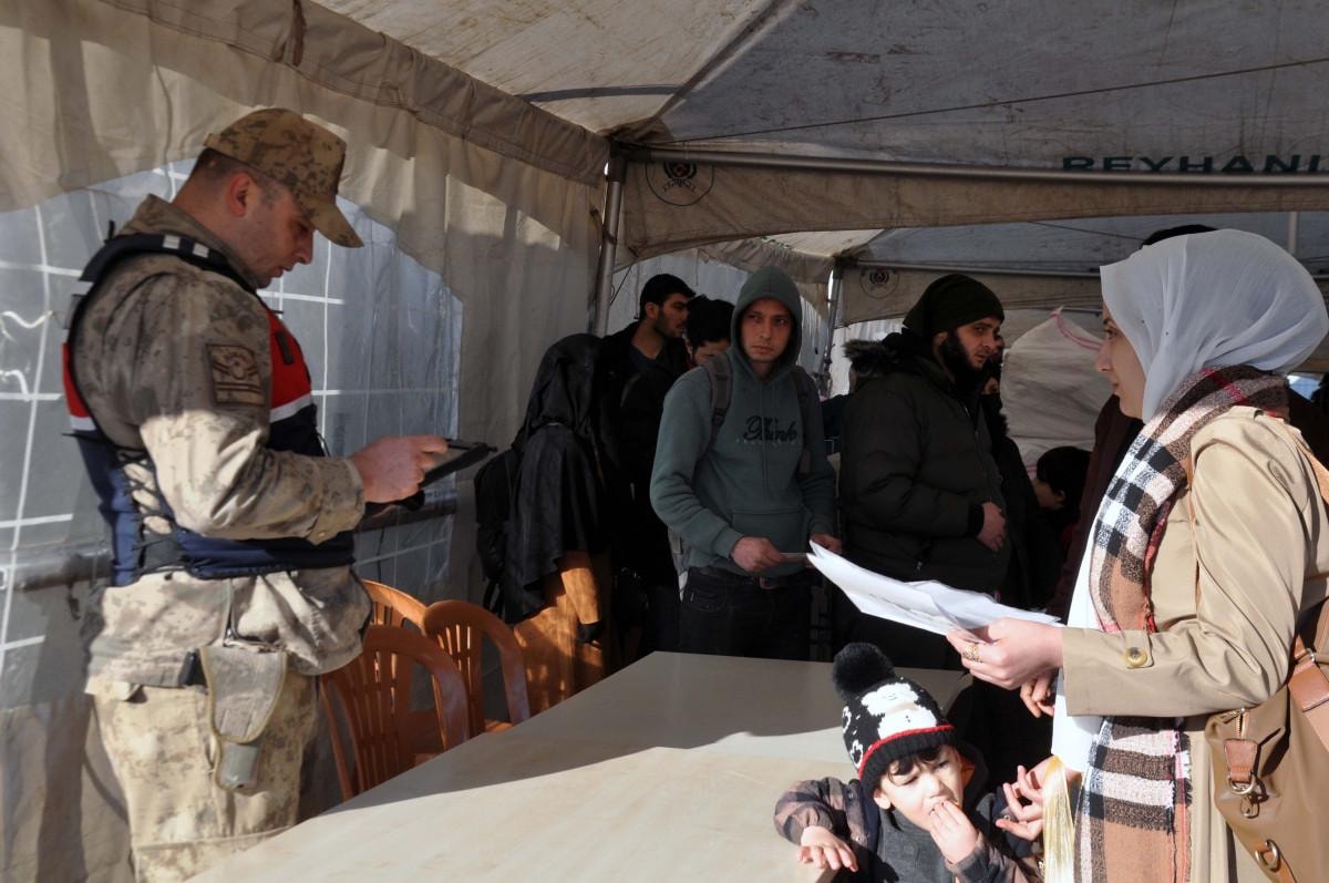 Göç İdaresi Müdürlüğü, jandarma, AFAD ve sivil toplum kuruluşları tarafından karşılanan Suriyelilere çeşitli hediyeler ve ihtiyaç malzemeleri veriliyor.