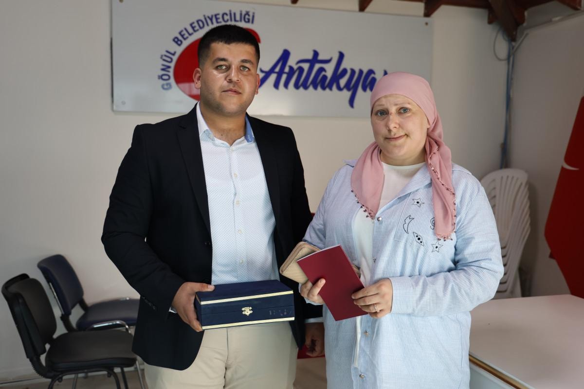 Ukraynalı gelin Kvasha ve Hataylı tır şoförü Kalkan, Antakya ilçesinde bulunan konteyner evlendirme dairesinde evlenerek resmi olarak hayatlarını birleştirdiler.