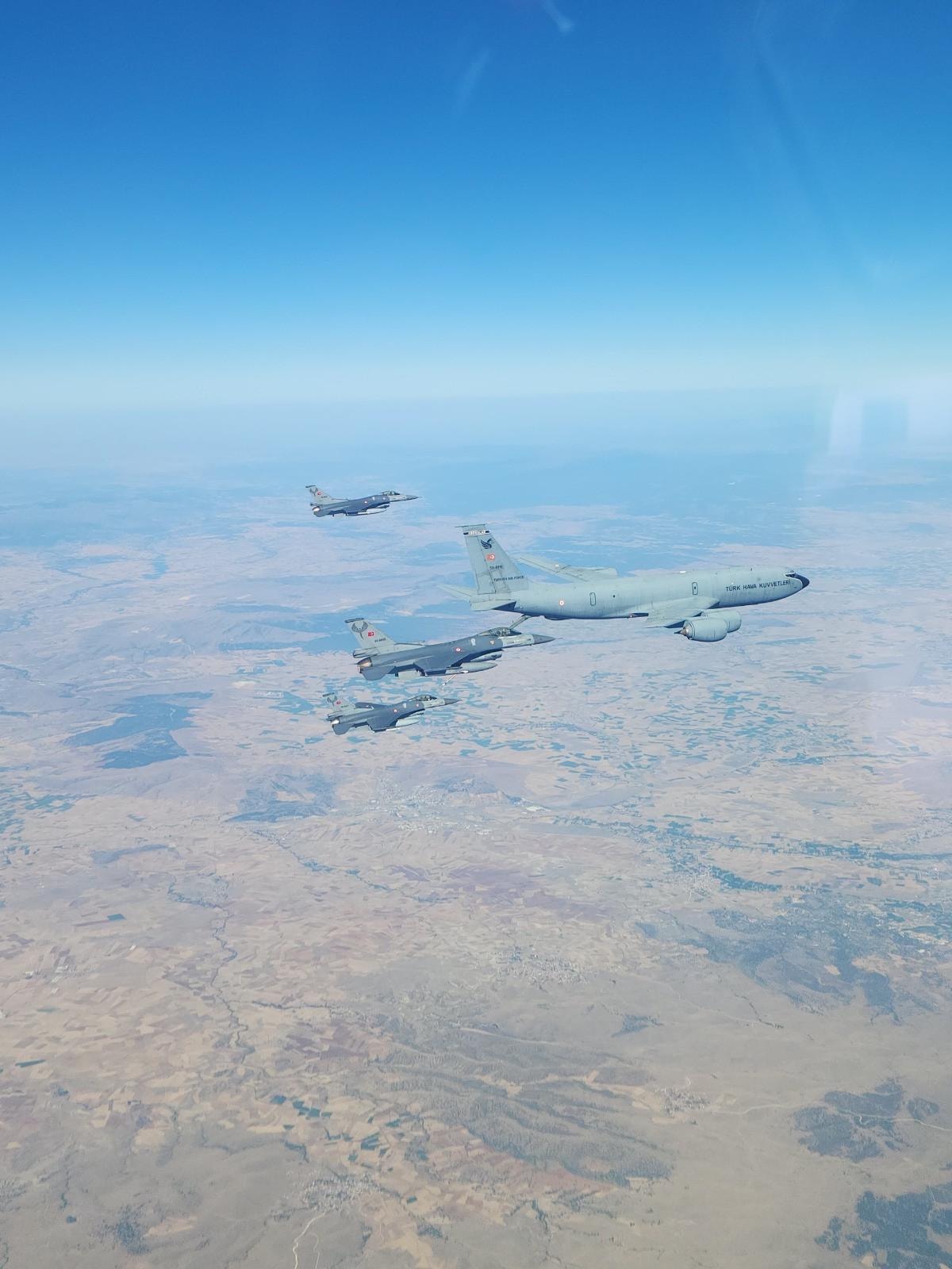Milli Savunma Bakanlığı'nın sosyal medya hesabından yapılan açıklamada, komutanlığa ait 4 adet F-16 ve 1 KC-135R uçağı, NATO Müttefik Hava Kuvveti Komutanlığı tarafından Romanya'da gerçekleştirilen 'Entegre Hava Füze Savunma Eğitimi'ne katıldığı açıklandı.