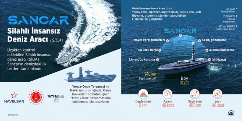 HAVELSAN Genel Müdürü Mehmet Akif Nacar, silahlı insansız deniz aracı (SİDA) SANCAR, bu yıl içerisinde envantere gireceğini duyurdu.