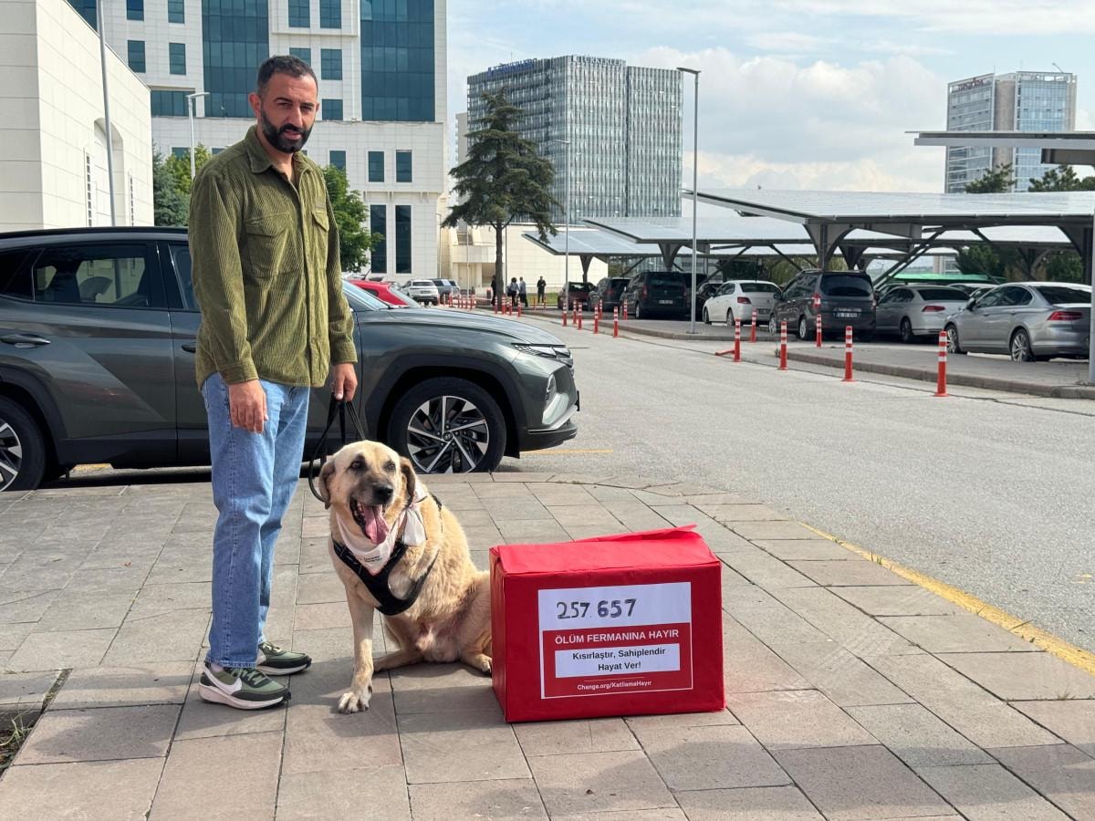 İmzaların teslimine hayvansever Şafak Yeşilyurt, Ordu'da silahla vurulması sonucu yaralanıp, bir bacağı kesilmesi ardından sahiplendiği 'Çoban' isimli köpeği ile katıldı. Hayvanseverler, 'Ölüm fermanına hayır', 'Kısırlaştır, sahiplendir, hayat ver' yazılı kırmızı kutudaki temsili imzaları, bakanlığa teslim etti.