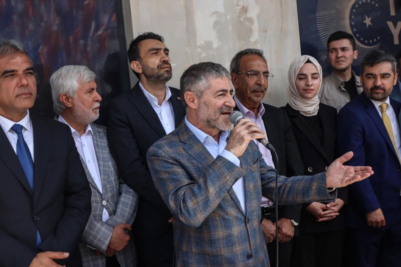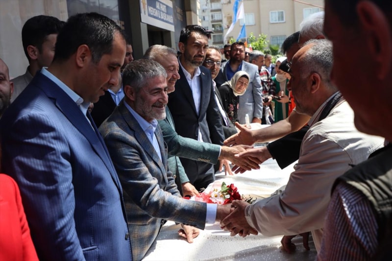 AK Parti'nin Mersin milletvekili adayı Hazine ve Maliye Bakanı Nureddin Nebati, partisinin il başkanlığı binasında düzenlenen programda, teşkilat üyelerinin bayramını kutladı.