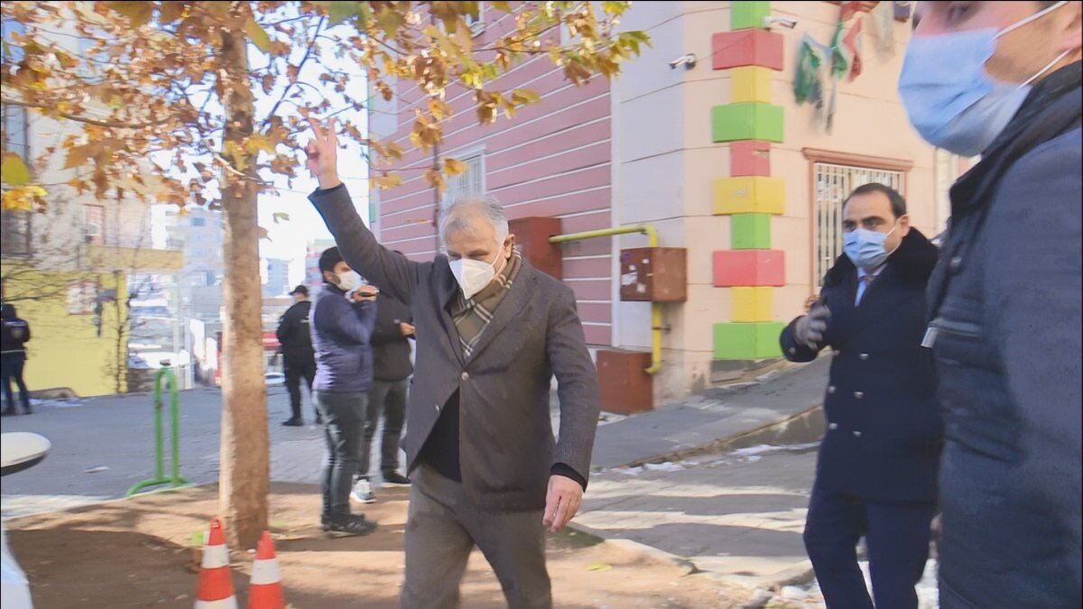 Bir anda gerginliğin artmasıyla polis ekiplerinin araya girdiği bina önünde "Halk düşmanı parti" pankartları taşıyan aileler "Kandil'in köpekleri! Kahrolsun PKK!" sloganlarıyla tepki gösterdi.