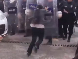 Kayyum protestosuna müdahale eden polisler, aralarında HDP İl Eşbaşkanlarının da bulunduğu 5 ismi gözaltına aldı. Müdahaleden rahatsız olan HDP'li vekil, polise karşılık vererek kalkanına kafa atmaya çalıştı.