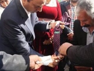 Baydemir'in tepki için yakarak bıraktığı kravatı da bir süre sonra önlem alan polisler tarafından söndürüldü.