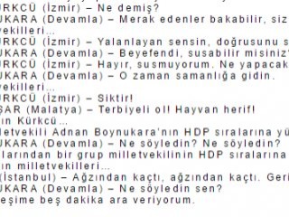 Tutanaklarda; HDP İzmir Milletvekili Ertuğrul Kürkçü'nün AK Parti Adıyaman Milletvekili Adnan Boynukara'ya sürekli sataştığı görülüyor.