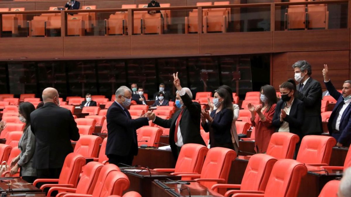 Gergerlioğlu, TBMM Genel Kurul Salonu'nda HDP'li milletvekillerinin zılgıtları arasında koltuğuna oturdu.
