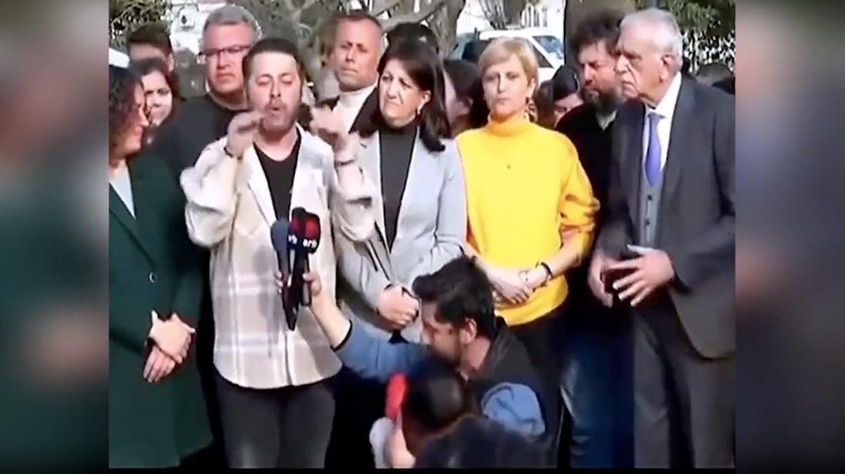 Hatay'da konuşan HDP Eş Genel Başkanı Pervin Buldan, konuşması sonrasında mikrofonu, kendisini Antakyalı depremzede olarak tanıtan bir kişiye verdi.