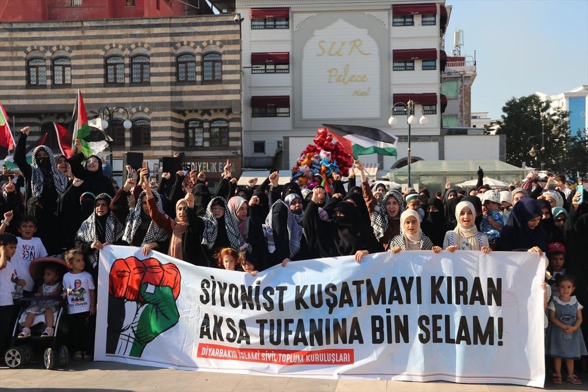 Vatandaşlar sık sık tekbir getirip İsrail aleyhine slogan attı.