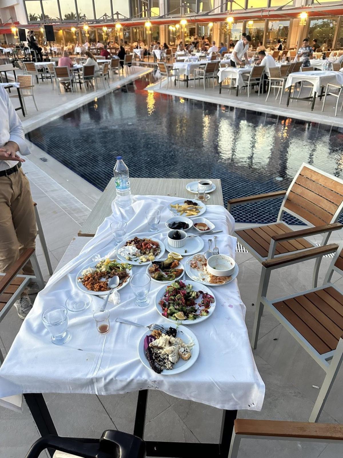 Bir sosyal medya kullanıcısı, yiyeceğinden fazlasını alıp masada bırakan tatilcileri çektiği bıraktığı manzarayı paylaştı.
