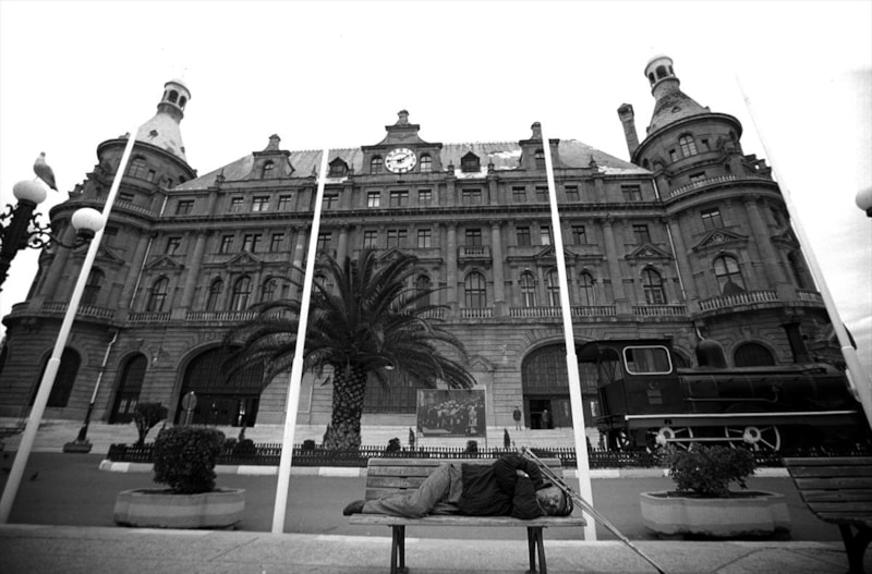 Sabahın erken saatlerinde bir vatandaş, Haydarpaşa Garı önündeki bir bankta vapuru beklerken uyuyakaldı. (Arşiv-22 Şubat 2009)