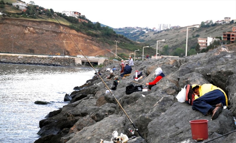 Samsun'da gece boyunca avlanan amatör balıkçılar, bir süre kayalıklarda uyudu. (Arşiv-7 Kasım 2009)