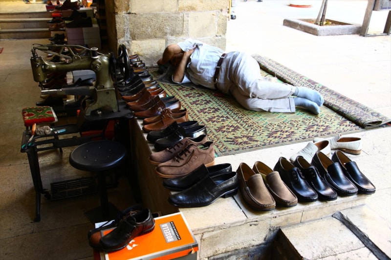 2009 yılında Kasım ayına denk gelen ramazanda oruç tutan bir esnaf, Kahramanmaraş'ta Kazancılar Çarşısı içinde uyudu. (Arşiv-1 Kasım 2009)