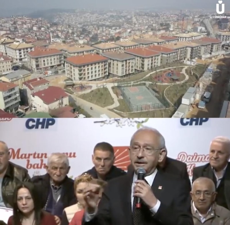 Üsküdar Belediye Başkanı Hilmi Türkmen, 2018'de tamamladıkaları kentsel dönüşüm projesine CHP Genel Başkanı Kemal Kılıçdaroğlu'nun karşı çıkarak yaptığı konuşmayı, proje görüntüleriyle paylaştı.