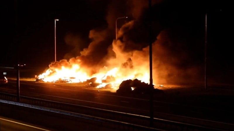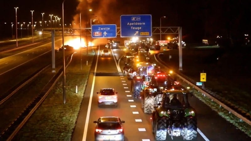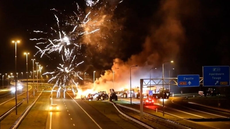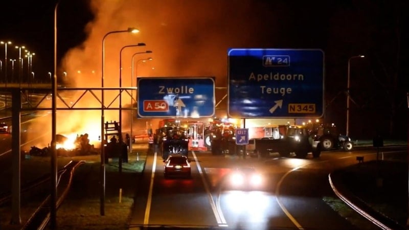 Artan maliyetleri protesto eden çiftçiler otoyolu molozlar ve havai fişeklerle ateşe verdi. Alev alev yanan yolda sürücüler kaçmaya çalışırken trafik kazaları meydana geldi.