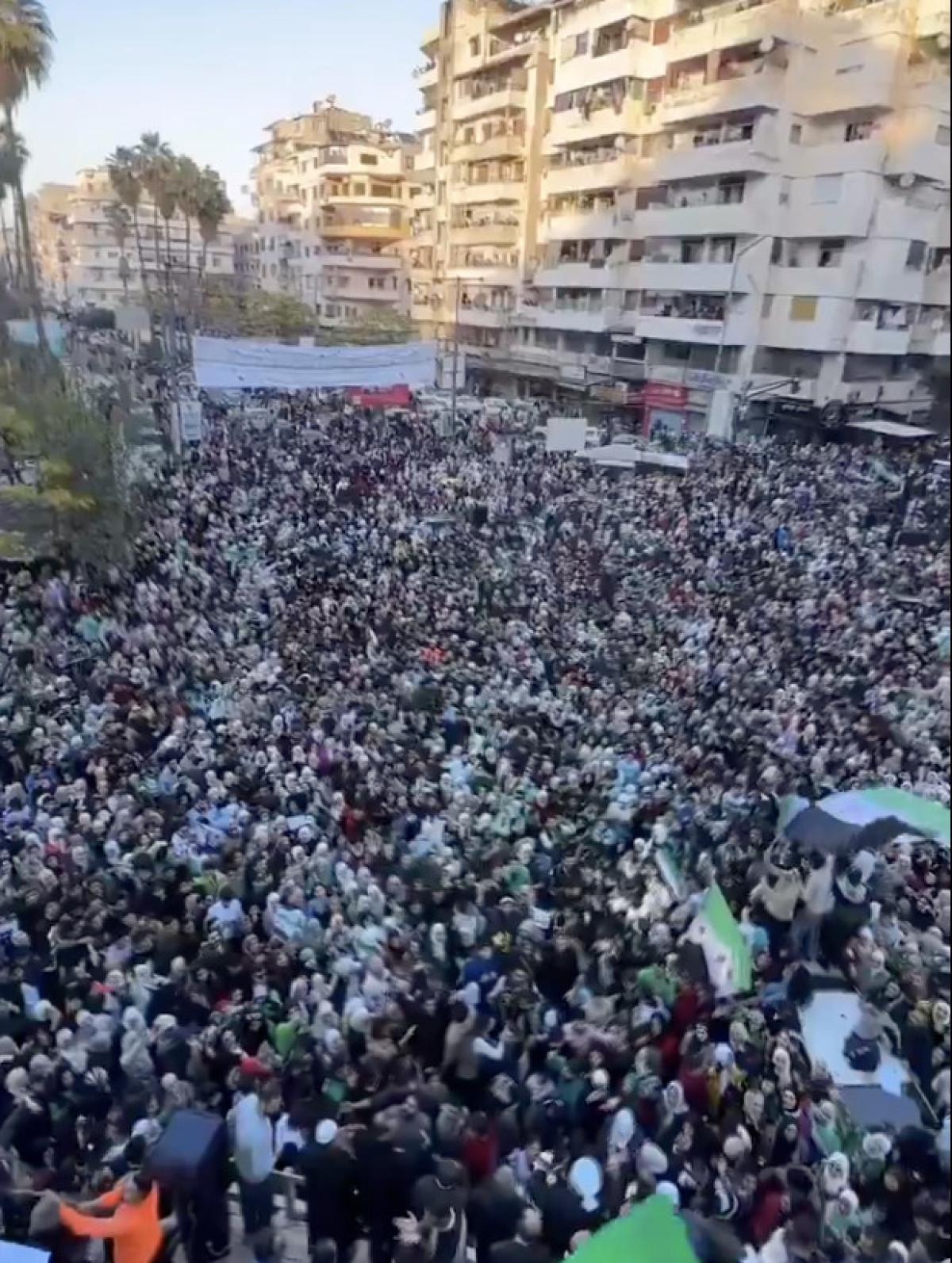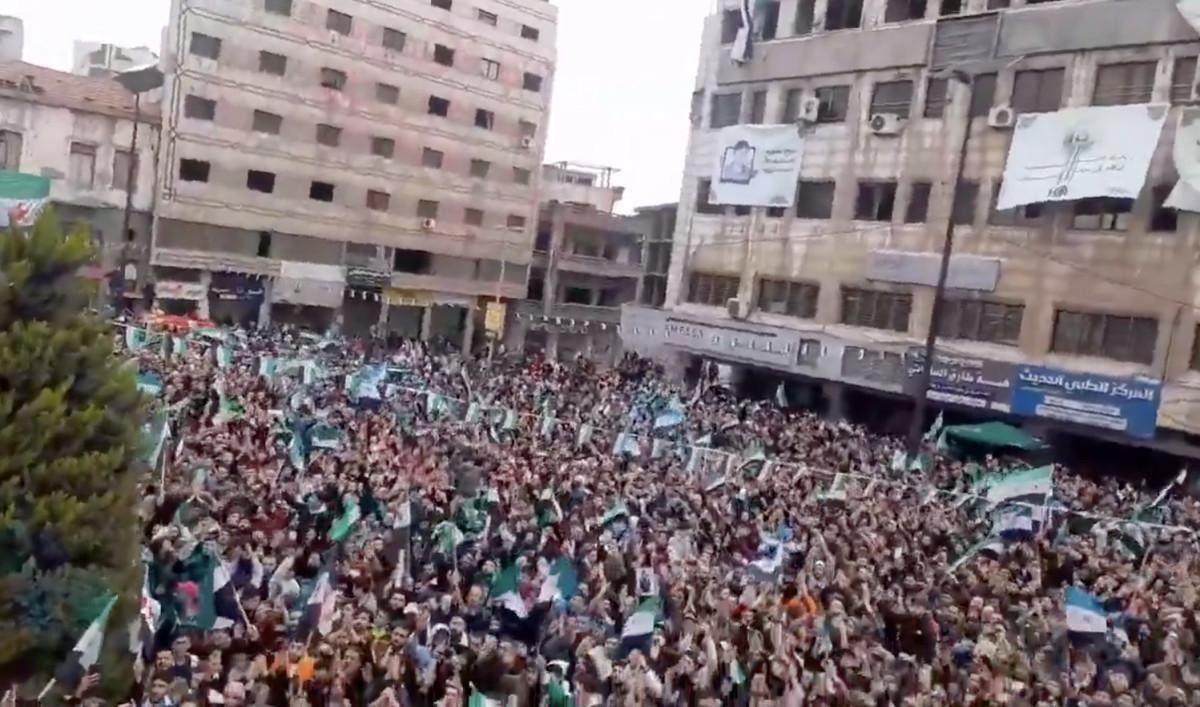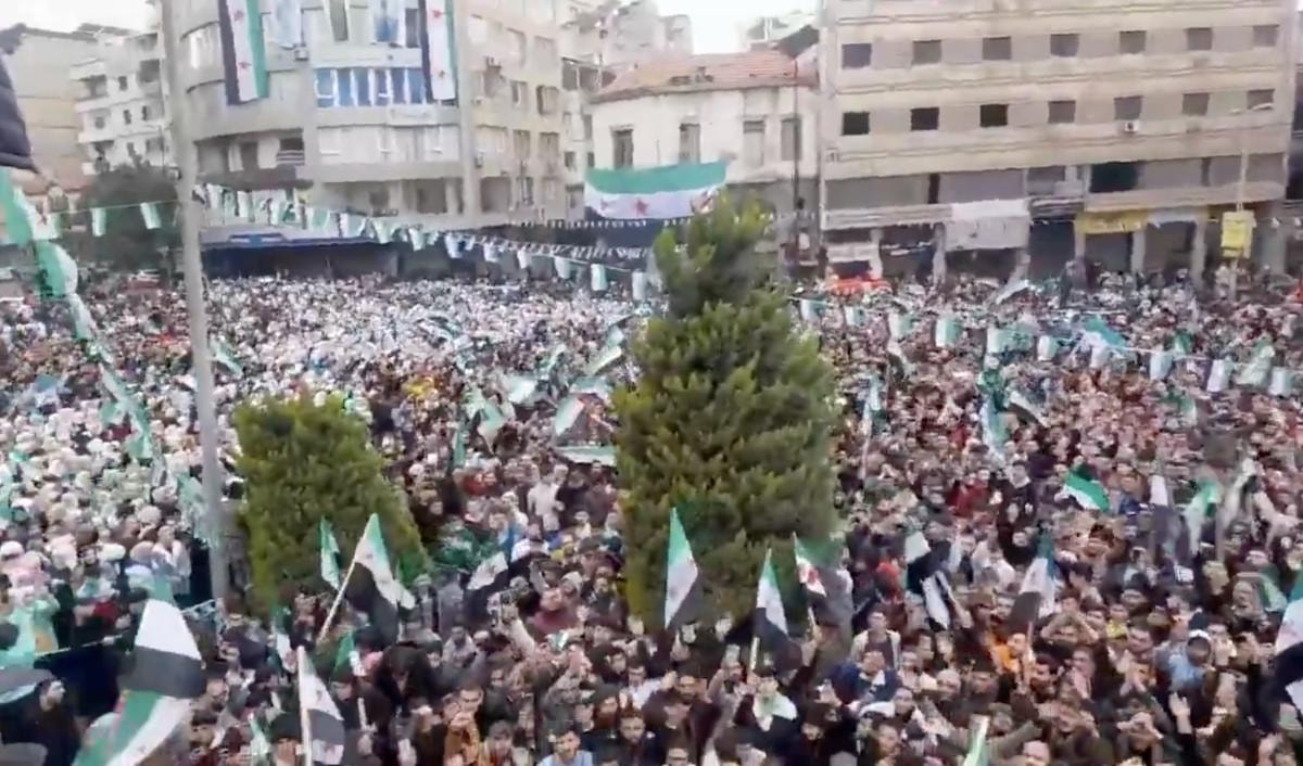 Şara'nın çağrısının ardından Halep, Lazkiye, Humus, Hama ve Şam gibi önemli şehirlerin meydanlarında coşkulu kutlamalar başladı.