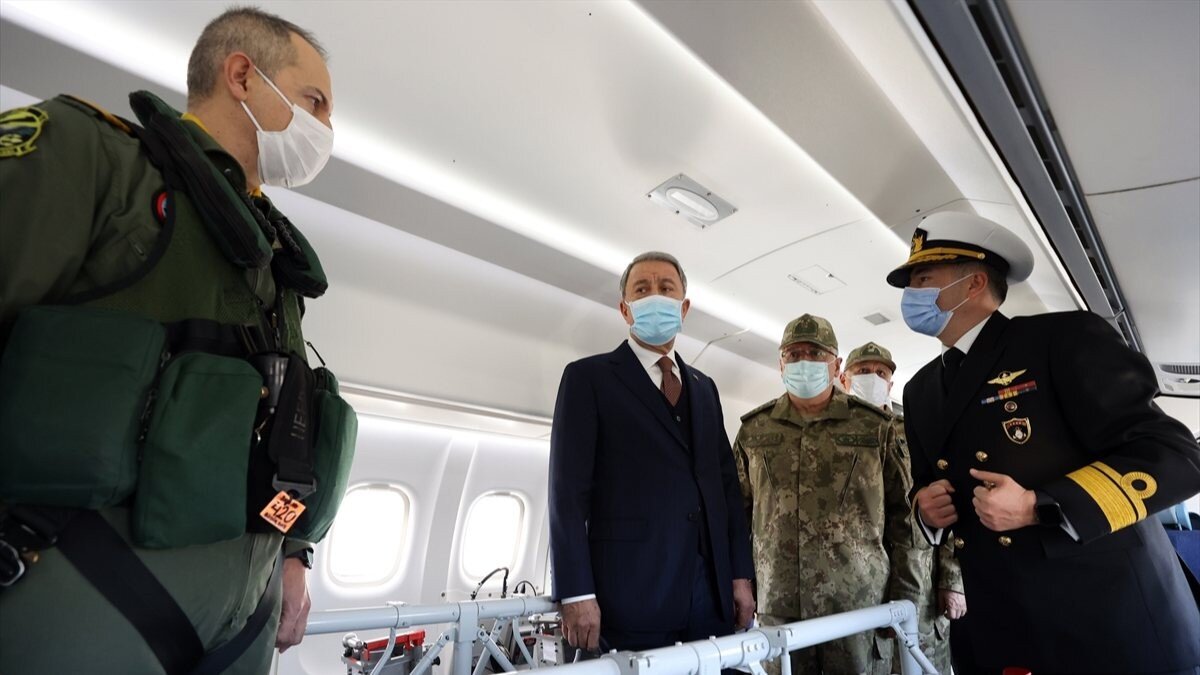 Milli Savunma Bakanı Hulusi Akar, beraberinde Genelkurmay Başkanı Orgeneral Yaşar Güler ile Deniz Kuvvetleri Komutanlığı'nın yeni uçağında incelemelerde bulundu.