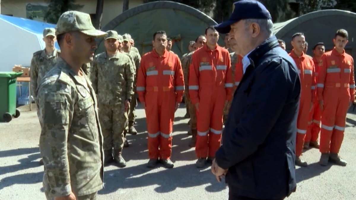 Bakan Akar, depremin ardından, İslahiye'de arama kurtarma çalışmalarına başlayan, sonra da Antakya'daki çalışmalara destek sağlayan bölük personelini tebrik ederek, "Türk Silahlı Kuvvetleri ilk andan itibaren seferber oldu. Büyük azimle çalıştı, milletinin yanına koştu. Elimizden gelen neyse bunları yapabilmek için büyük bir azim ve fedakarlık içinde çalıştık, çalışmaya devam ediyoruz." dedi.