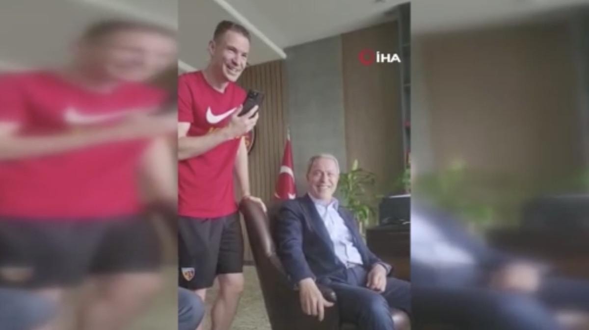 Milli Savunma Bakanı Hulusi Akar, Kayserispor ziyareti sırasında takımın Yunan stoperi Dimitrios Kolovetsios'a bir sürpriz yaptı. Akar, cep telefonundan aradığı Yunanistan Savunma Bakanı Nikolaos Panagiotopoulos ile görüştürdü. İki Bakan’ın telefon görüşmesi sırasında renkli anlar da yaşandı.