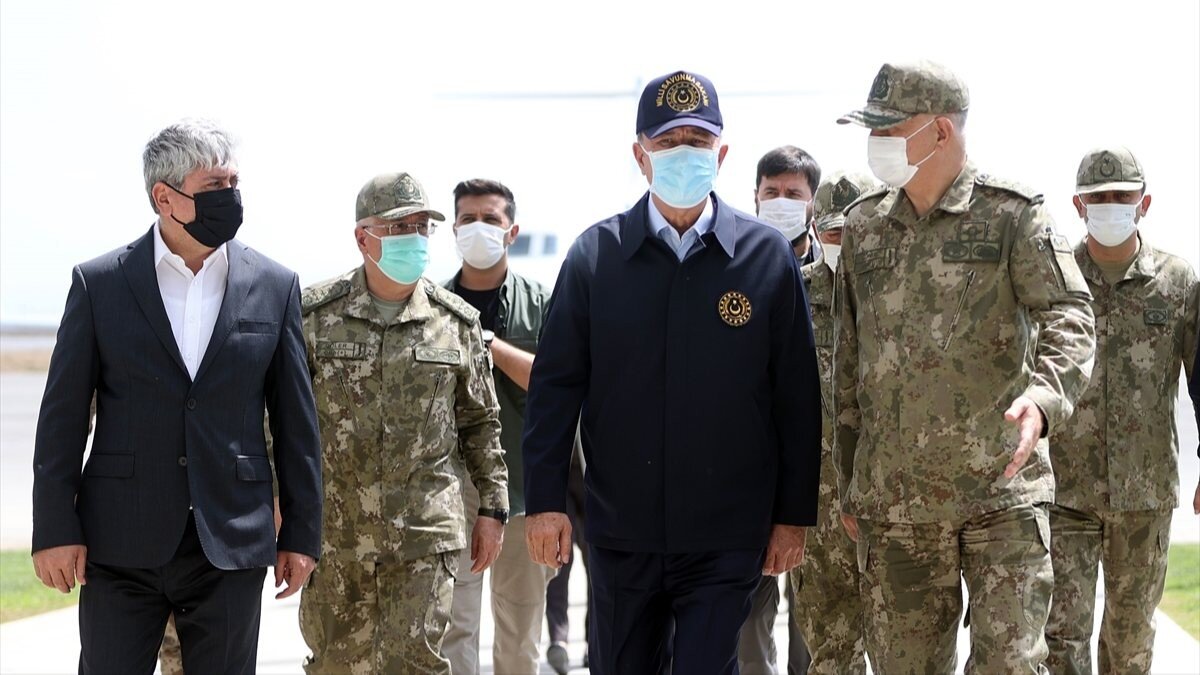Bakan Akar, burada beraberindeki Güler ve Avsever ile sınır hattı ve ötesindeki birliklerin komutanları ile bir araya geldi.