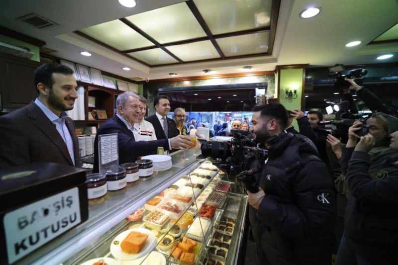 Esnaf ziyaretleri kapsamında sahildeki kafede Türk kahvesi içen Akar, başka bir dükkanda da muhallebi ve börek yedi.